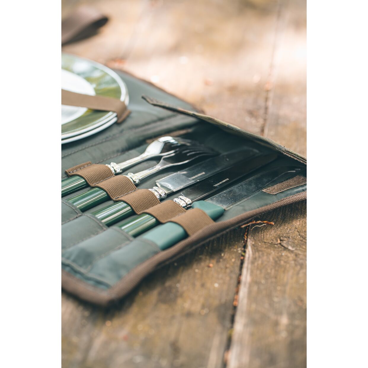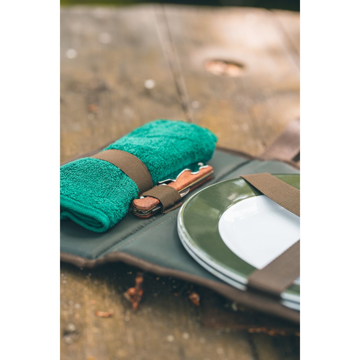 Obsahuje: 2x plastový tanier, 1x uterák, 1x nôž na mäso a ovocie, 2x vidličku a 2x nôž.