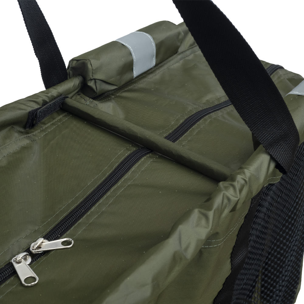Vážící sak má štyri plaváky, ktoré majú reflexné pásky pre ľahkú viditeľnosť v noci. V hornej centrálnej časti je dvojitý popruh, ktorý je zakončený oceľovými krúžkami a je určený na pripojenie váhy. Dvojité zipsy sú po celej dĺžke. Veľký dôraz bol kladený na sieťové otvory, aby k úlovku prúdil dostatok okysličenej vody. Z oboch strán saku sú plastové D krúžky, na ktoré je možné pripojiť 3m lano, ktoré je zakončené plavákom s plastovým kolíkom, ktorý je určený na zabezpečenie saku pri brehu. To všetko je ukryté v kapsičke na suchý zips. Je dodávaný vrátane nepremokavého obalu, ktorý je zvnútra pogumovaný, takže zabráni úniku vody a pachu zo saku.