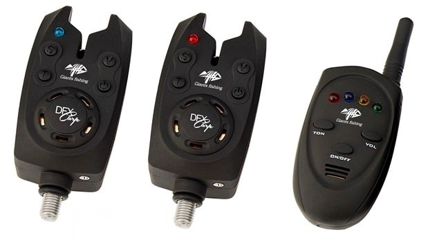 Sada hlásičov Giants Fishing DFX Carp je vodeodolná s minimálnym dosahom príjmu priposluchu 200 metrov.